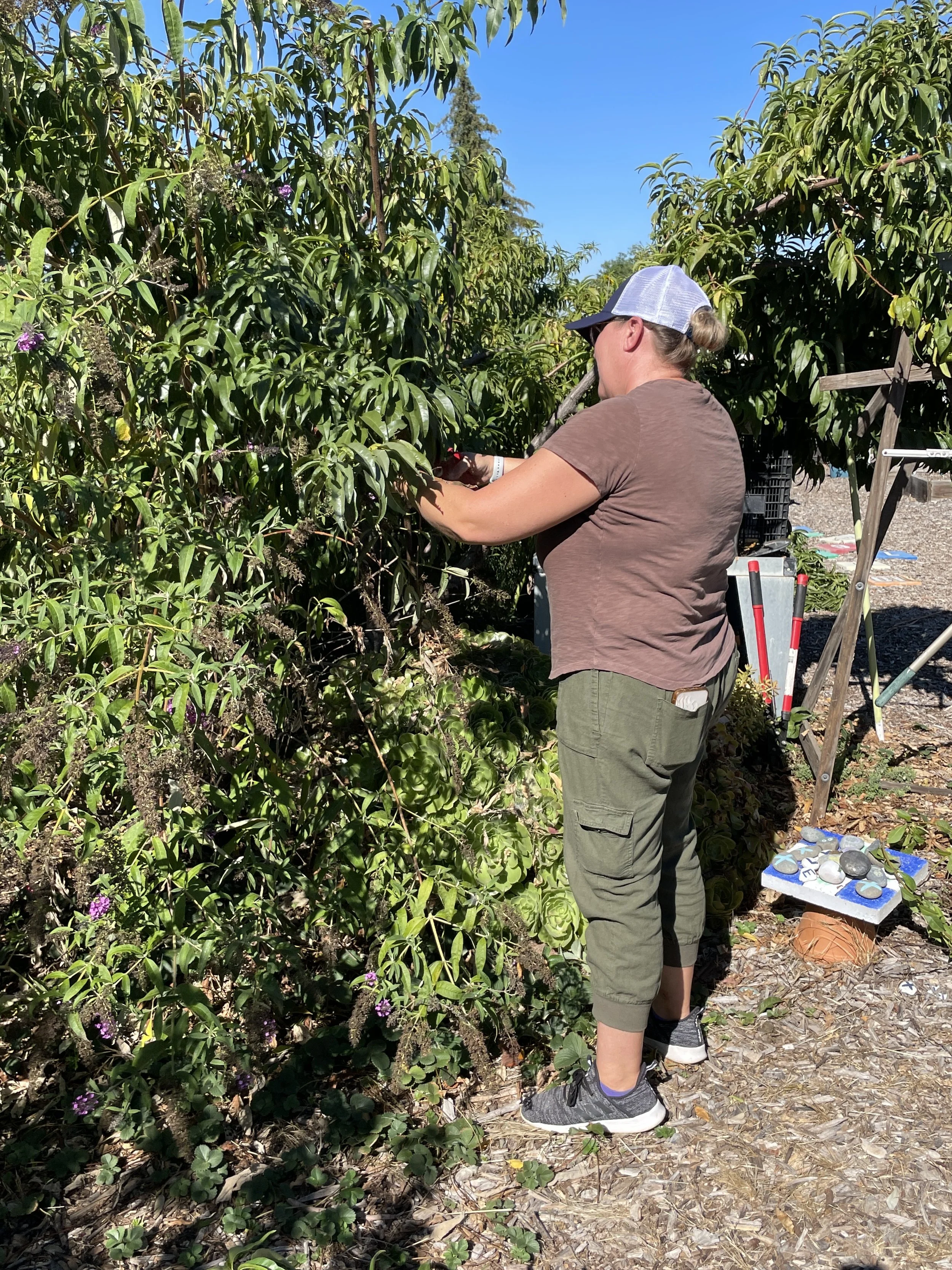 This morning, folks from our community and I came together with our gardening experts, Bob and Sharon Yocum, for our monthly Fruit Tree Pruning Workshop. Bob and Sharon are our local Master Gardeners through the UCCE Master Gardeners of San Bernardino County. With their knowledge we delved into the art of pruning and caring for our fruit trees during these summer months. After an engaging classroom session, we rolled up our sleeves and headed to the garden's fruit trees, putting Bob and Sharon's teachings into action. The turnout was incredible, with a group that was not only eager to learn but also had a bunch of insightful questions, all expertly addressed by our pros.